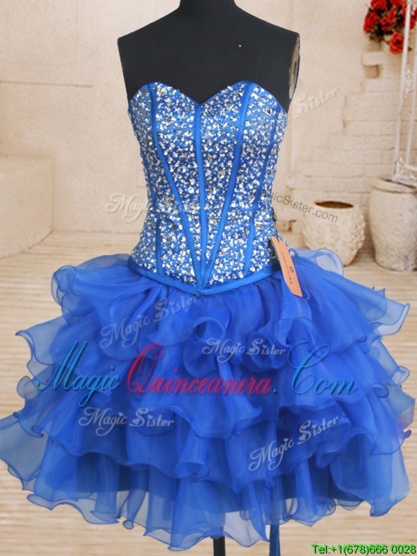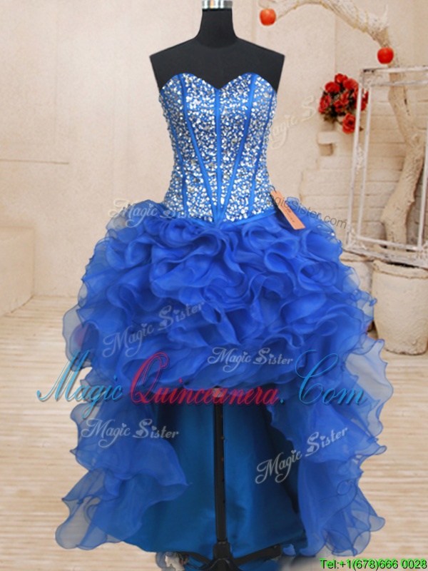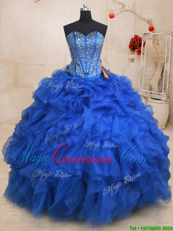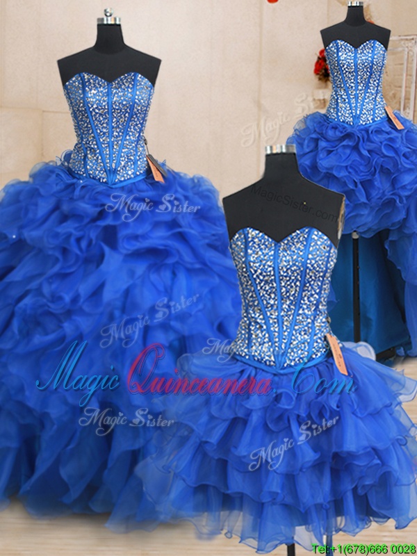On Sale Four Piece Royal Blue Lace Up Sweet 16 Dresses Beading and Ruffles Sleeveless Floor Length