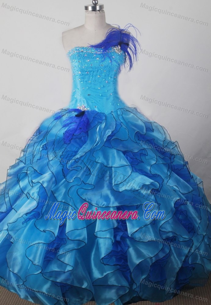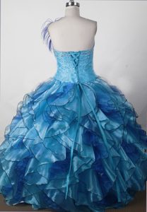 One Shoulder Beading and Ruffles Decorate Pageant Dress for Girls