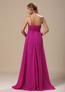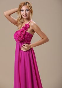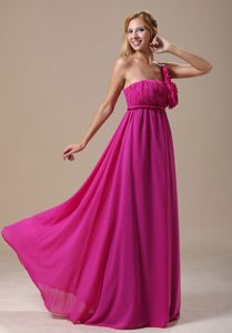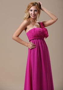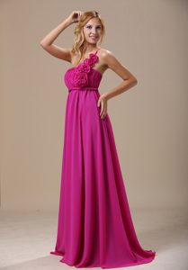 One Shoulder Dama Dresses In Fuchsia with Hand Made Flowers