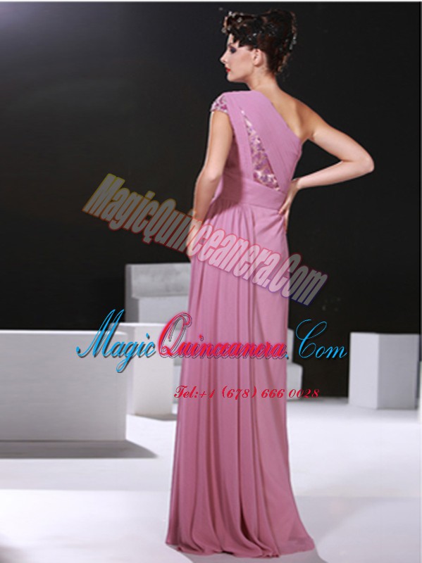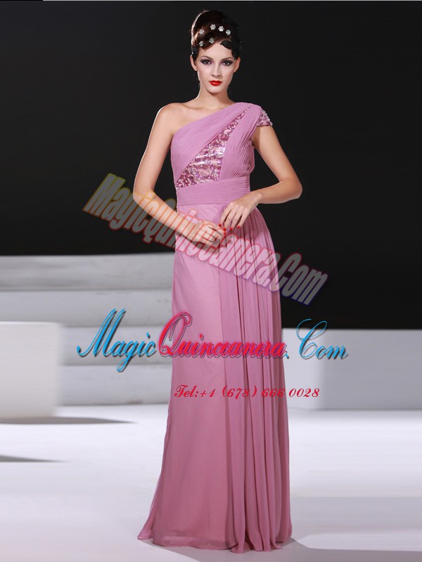 One Shoulder Lilac Sleeveless Ruching Prom Party Dress