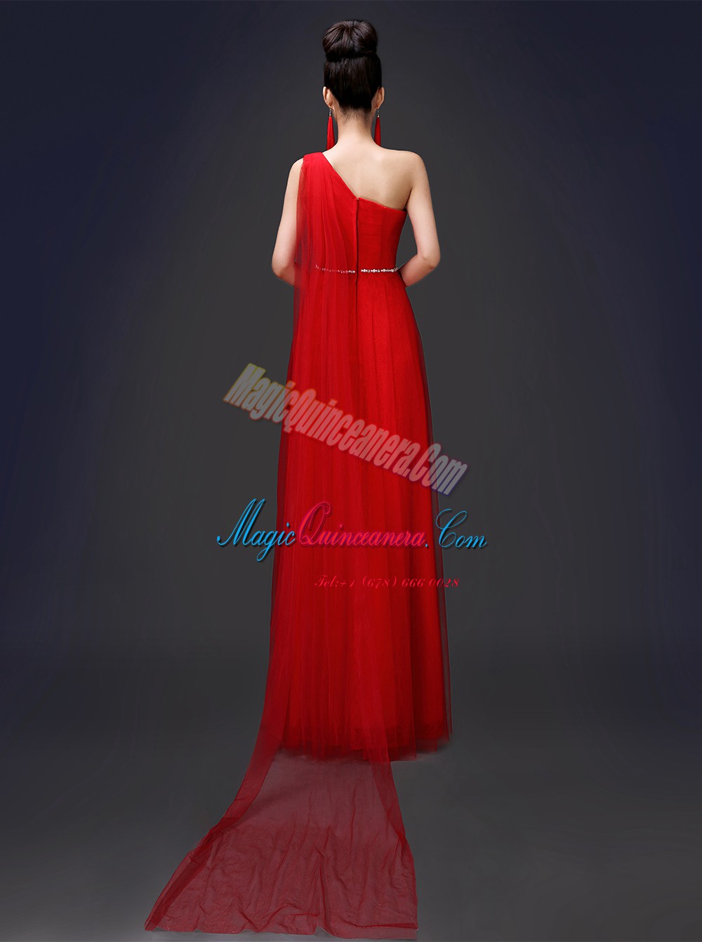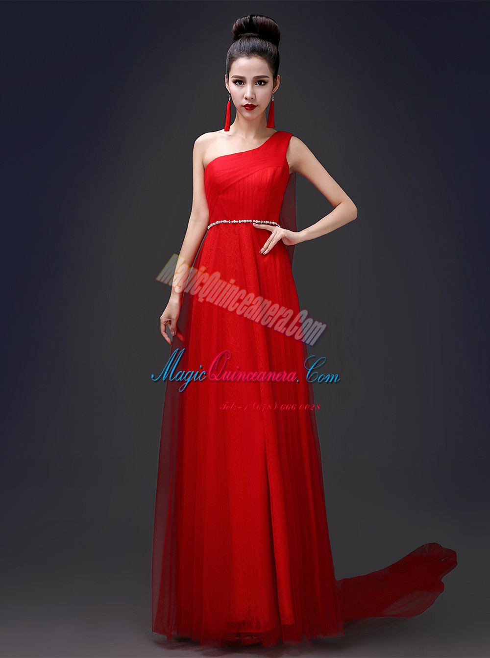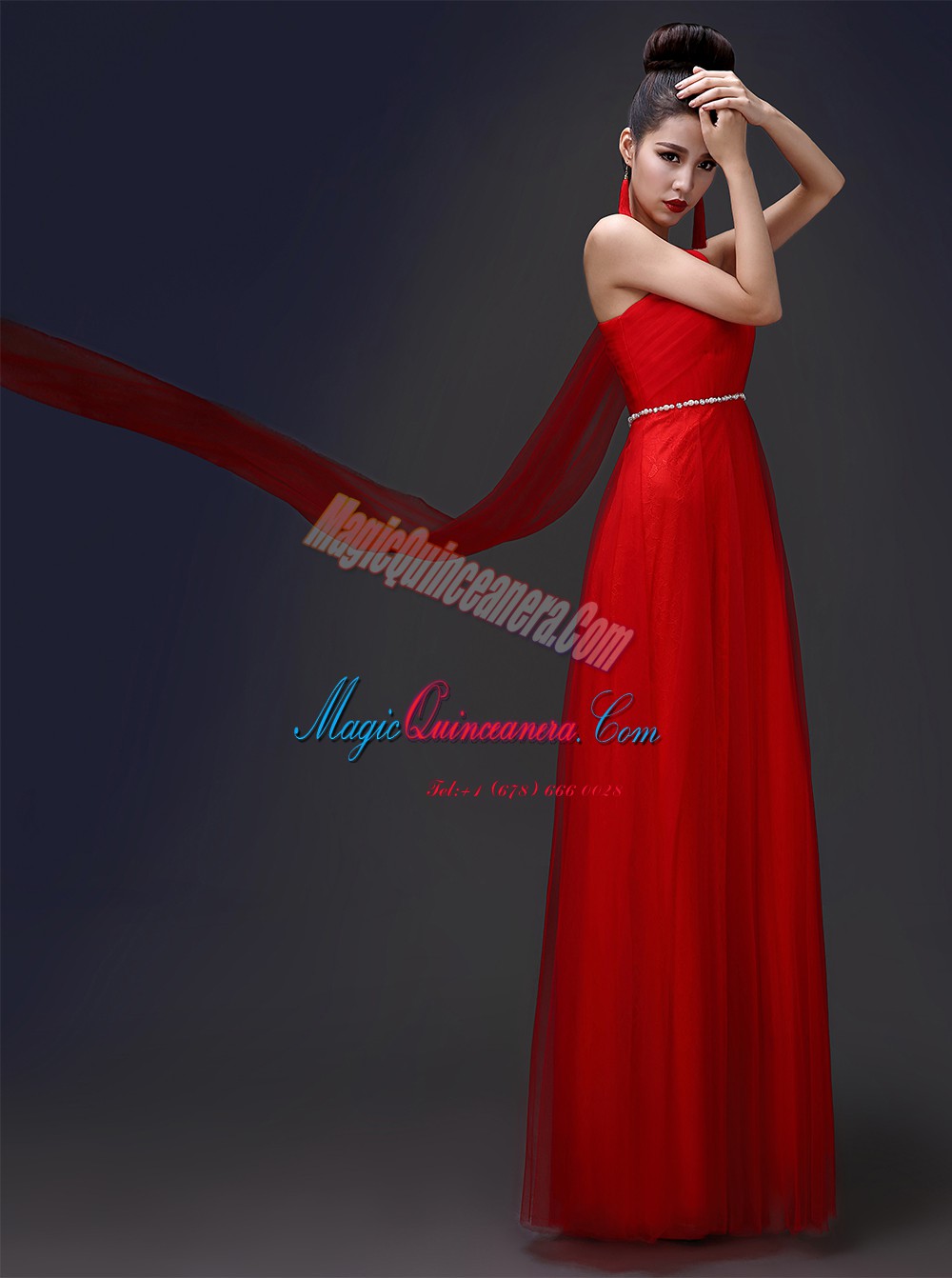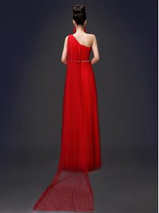 One Shoulder Red Zipper Mother Of The Bride Dress Beading Sleeveless Floor Length