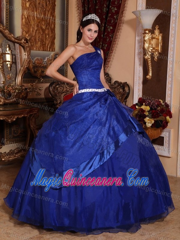 One Shoulder Royal Blue Quinceanera Dress with Asymmetric Layers