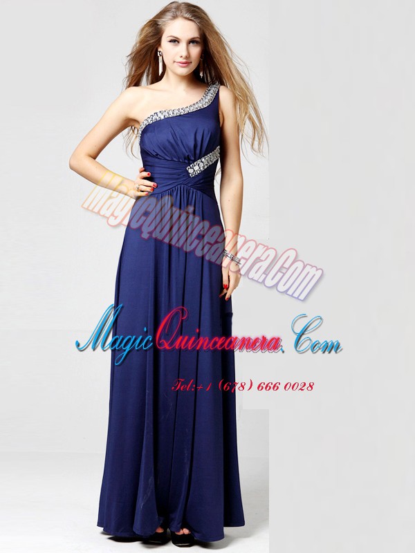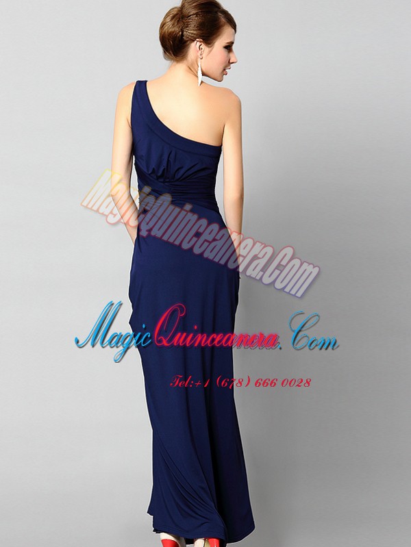 One Shoulder Sleeveless Silk Like Satin Prom Dresses Beading and Ruching Side Zipper