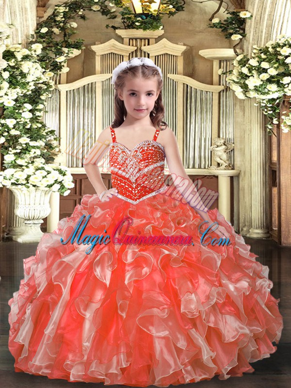 Orange Red Sleeveless Organza Lace Up Custom Made Pageant Dress for Party and Sweet 16 and Wedding Party