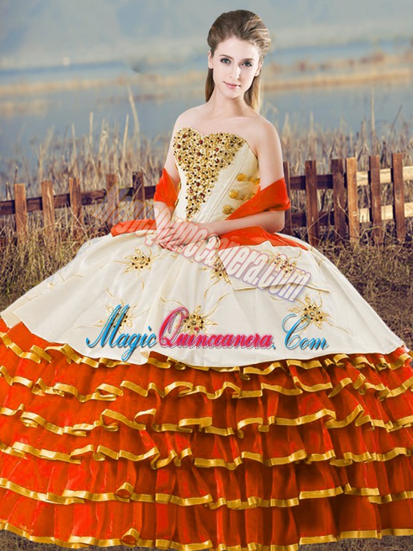 , Orange Sleeveless Floor Length Ruffled Layers Lace Up Quinceanera Gown