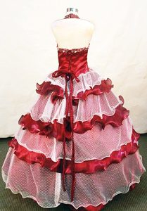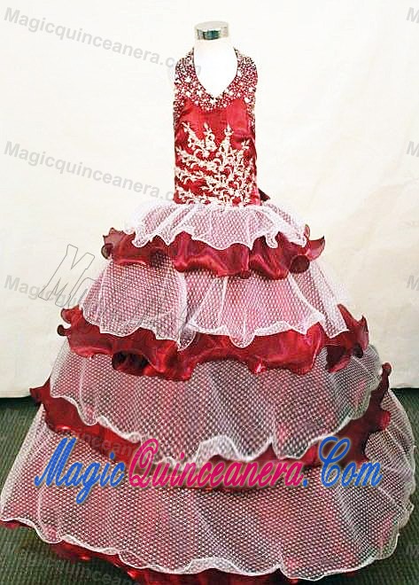 Organza and Net Halter Beaded Little Girl Pageant Dresses