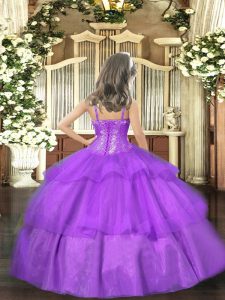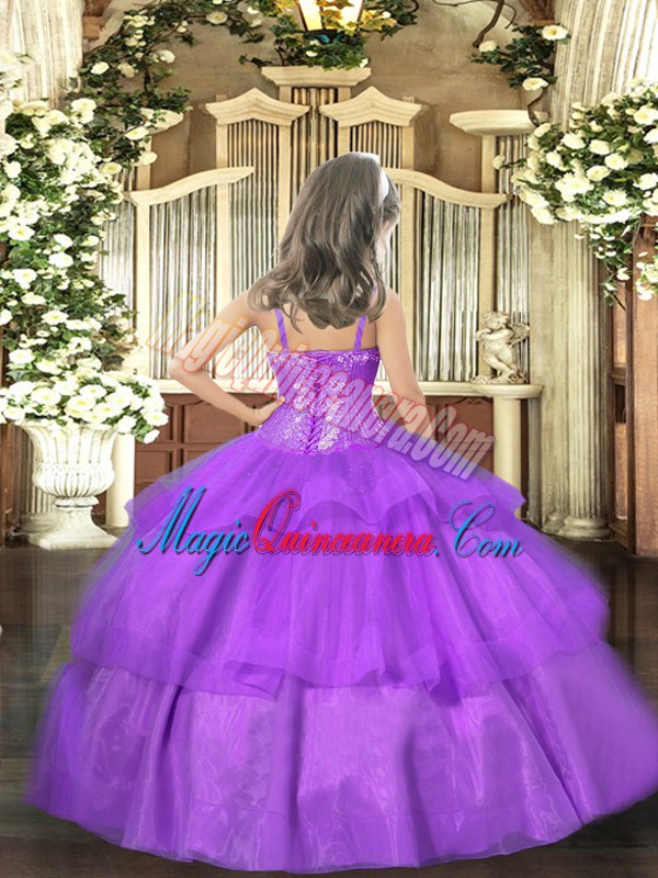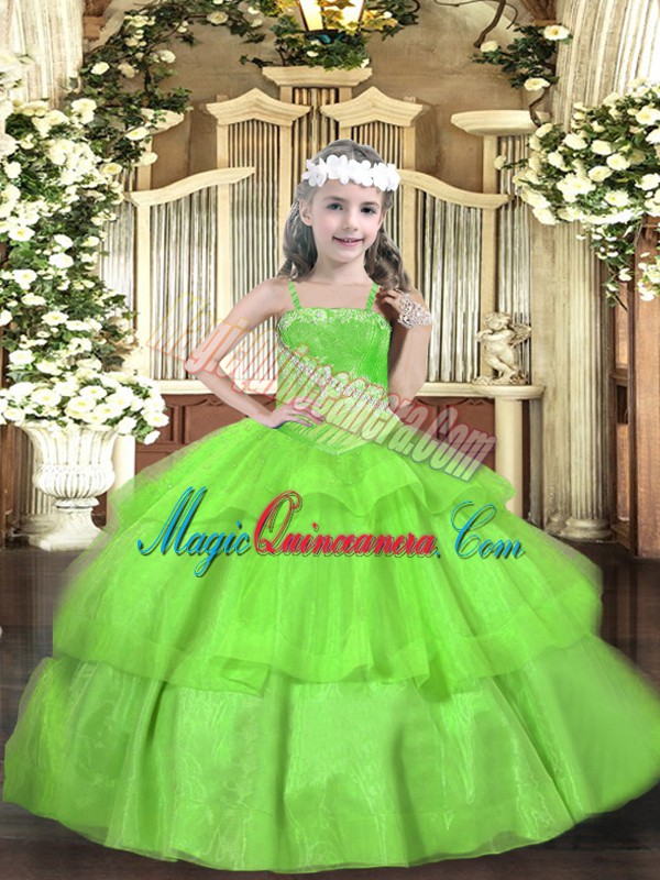 Organza Lace Up Straps Sleeveless Floor Length Pageant Dresses Beading and Ruffled Layers
