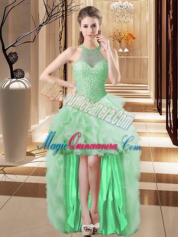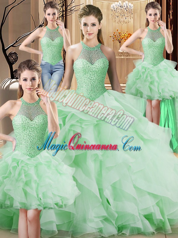 Organza Sleeveless 15 Quinceanera Dress Brush Train and Beading and Ruffles