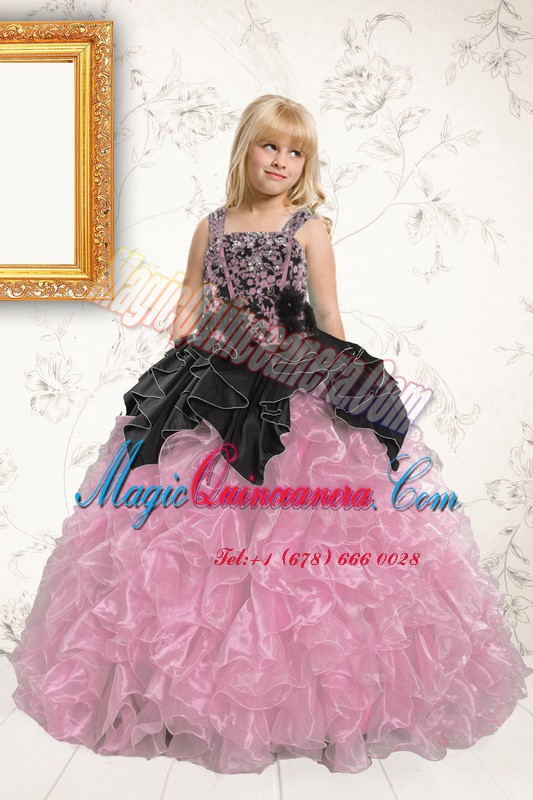 Organza Sleeveless Floor Length Glitz Pageant Dress and Beading and Ruffles