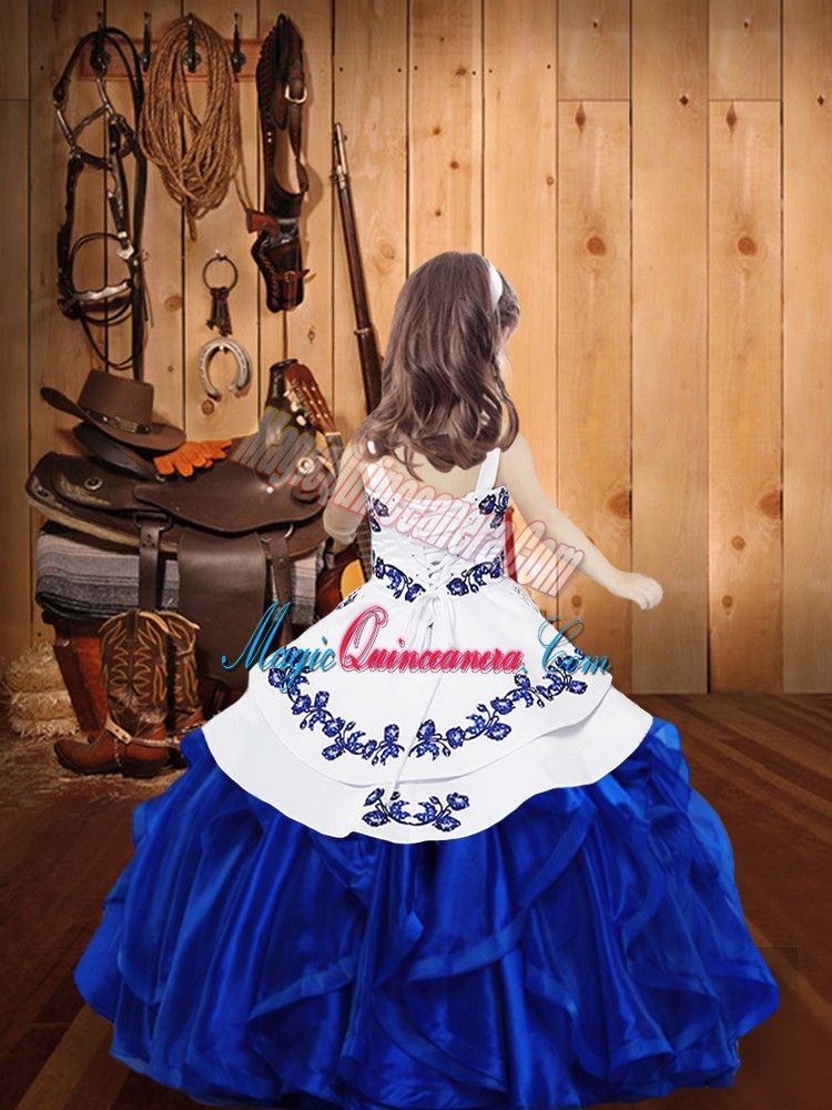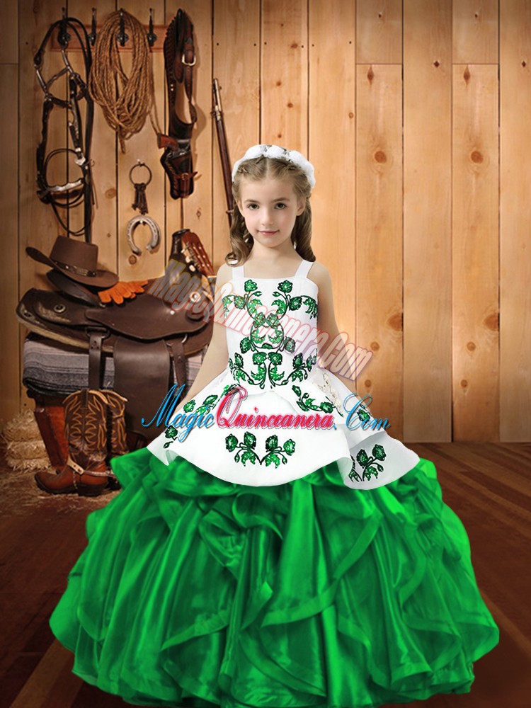 Organza Sleeveless Floor Length Little Girl Pageant Dress and Embroidery and Ruffles