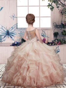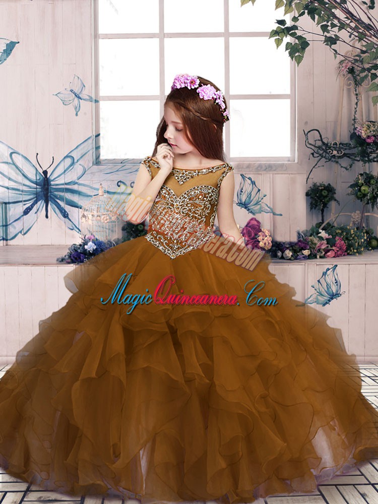 , Organza Sleeveless Floor Length Little Girl Pageant Gowns and Beading and Ruffles