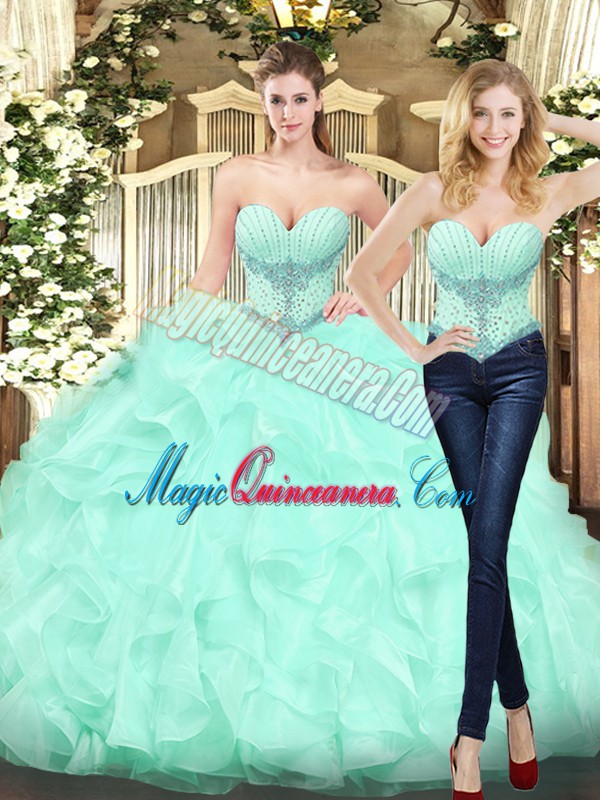 Organza Sleeveless Floor Length Quinceanera Gown and Beading and Ruffles
