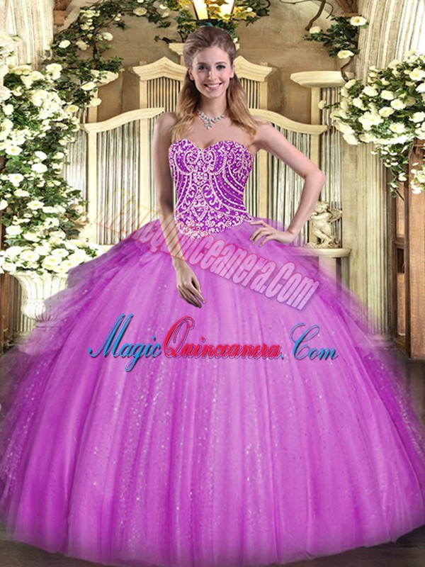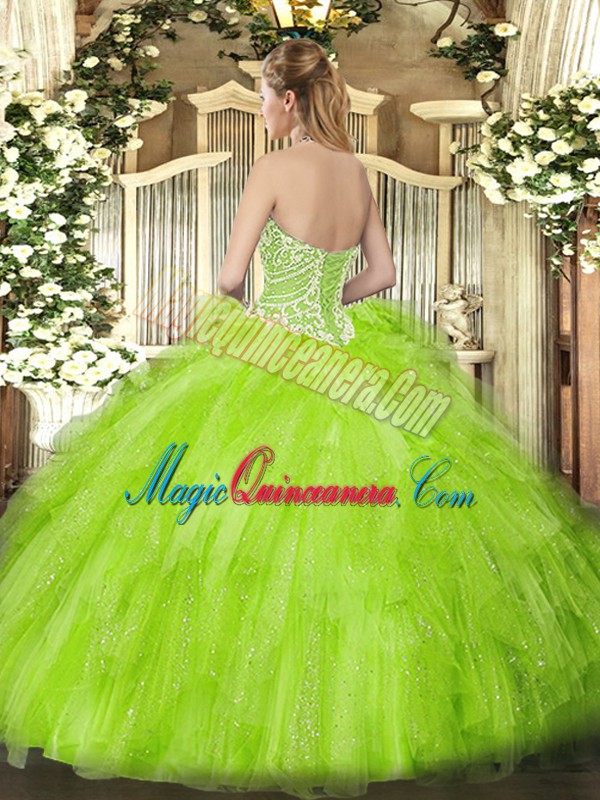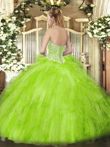 , Organza Sleeveless Floor Length Sweet 16 Dress and Beading and Ruffles