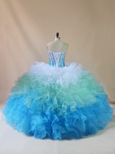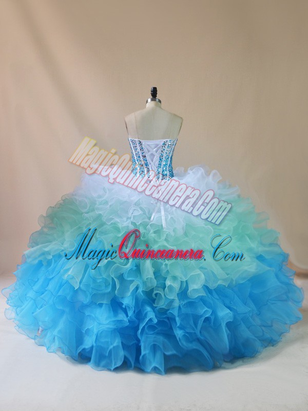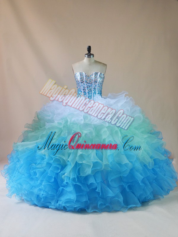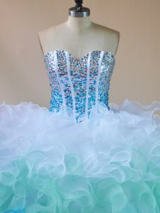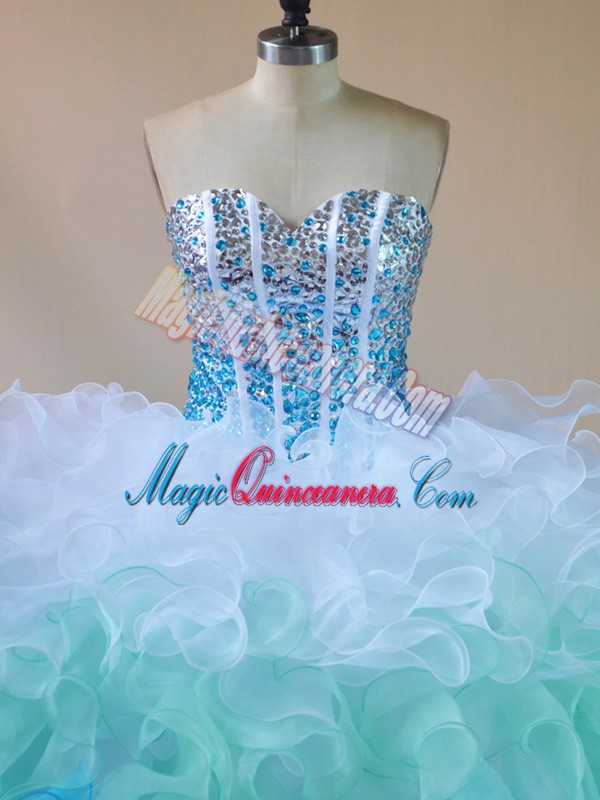 , Organza Sleeveless Floor Length Sweet 16 Dresses and Beading and Ruffles