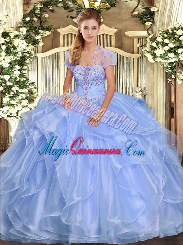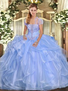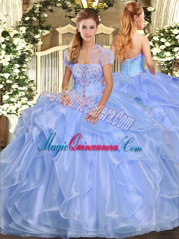 Organza Sleeveless Floor Length Vestidos de Quinceanera and Appliques and Ruffles