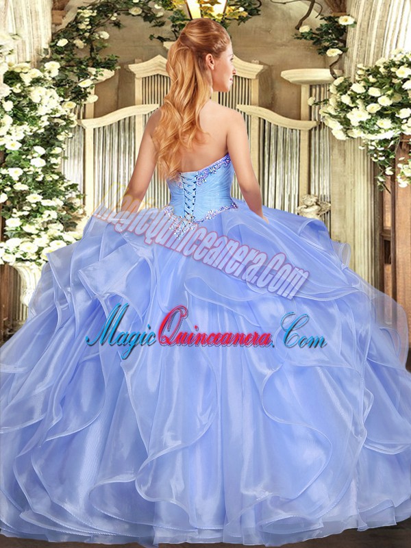 , Organza Sleeveless Floor Length Vestidos de Quinceanera and Appliques and Ruffles