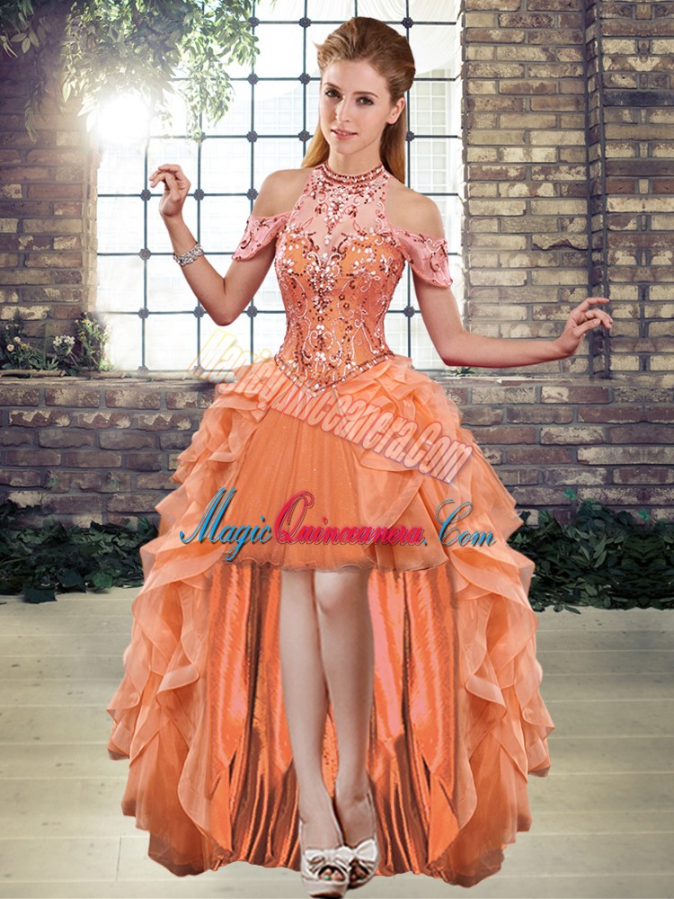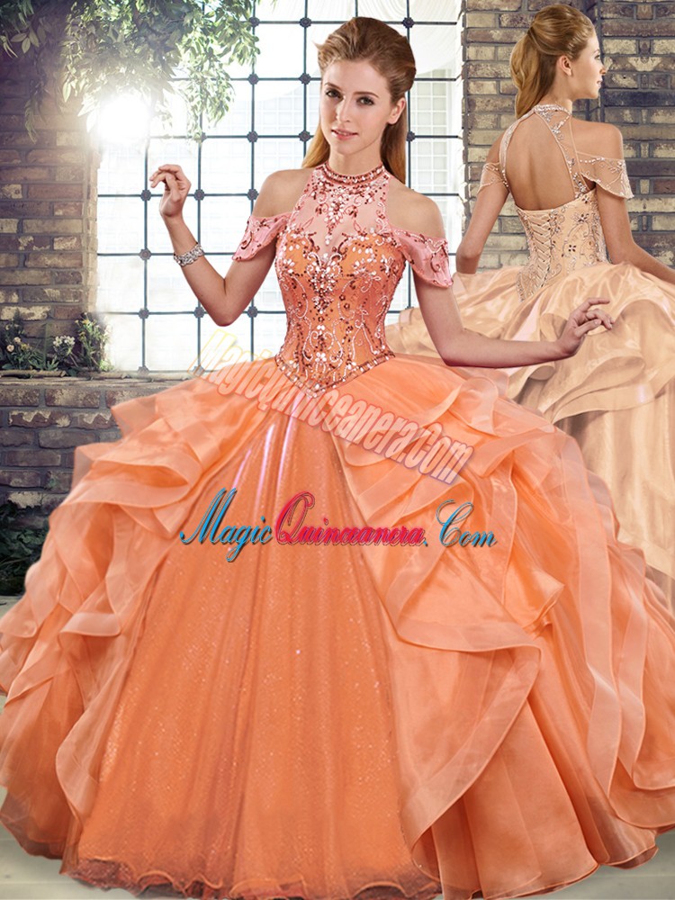 , Organza Sleeveless Floor Length Vestidos de Quinceanera and Beading and Ruffles