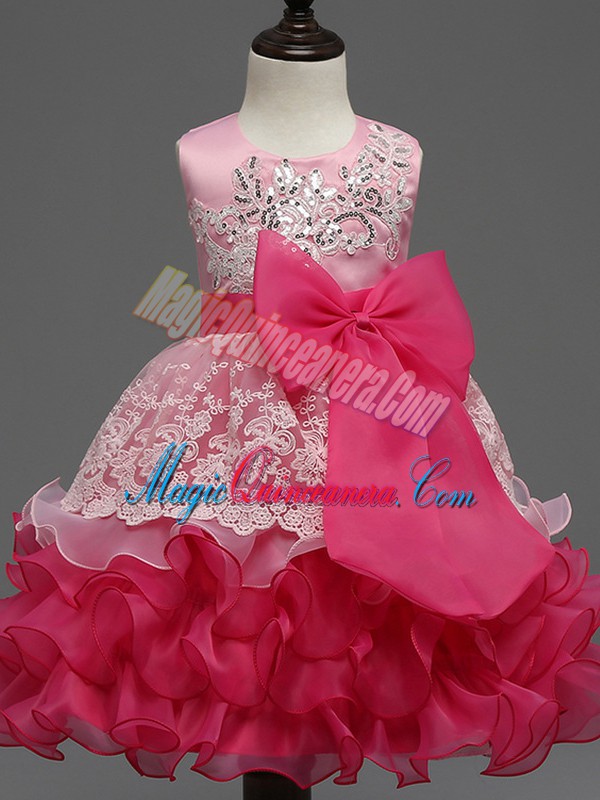 Organza Sleeveless Tea Length Pageant Dress for Teens and Lace and Ruffled Layers and Bowknot