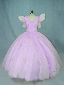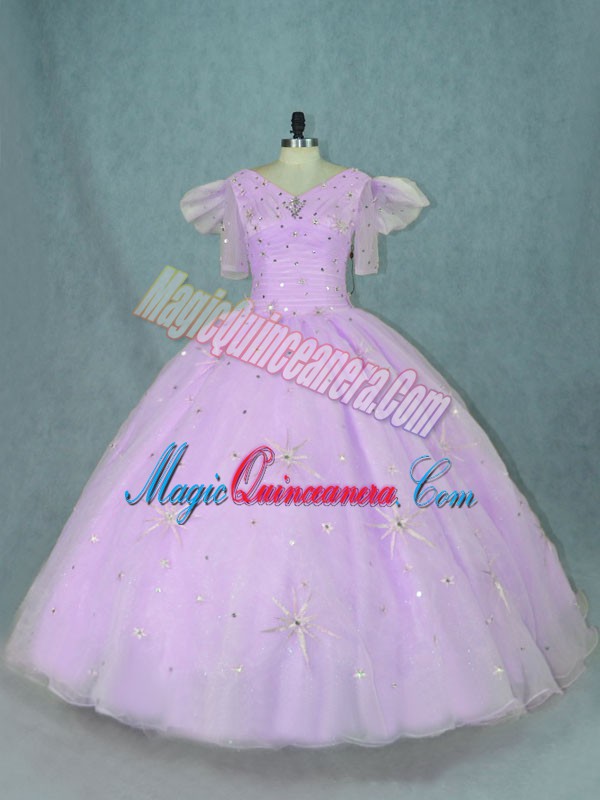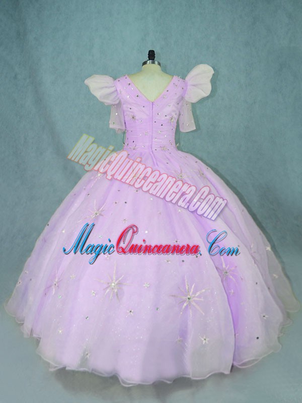, Organza V-neck Sleeveless Zipper Beading Quinceanera Gowns in Lavender