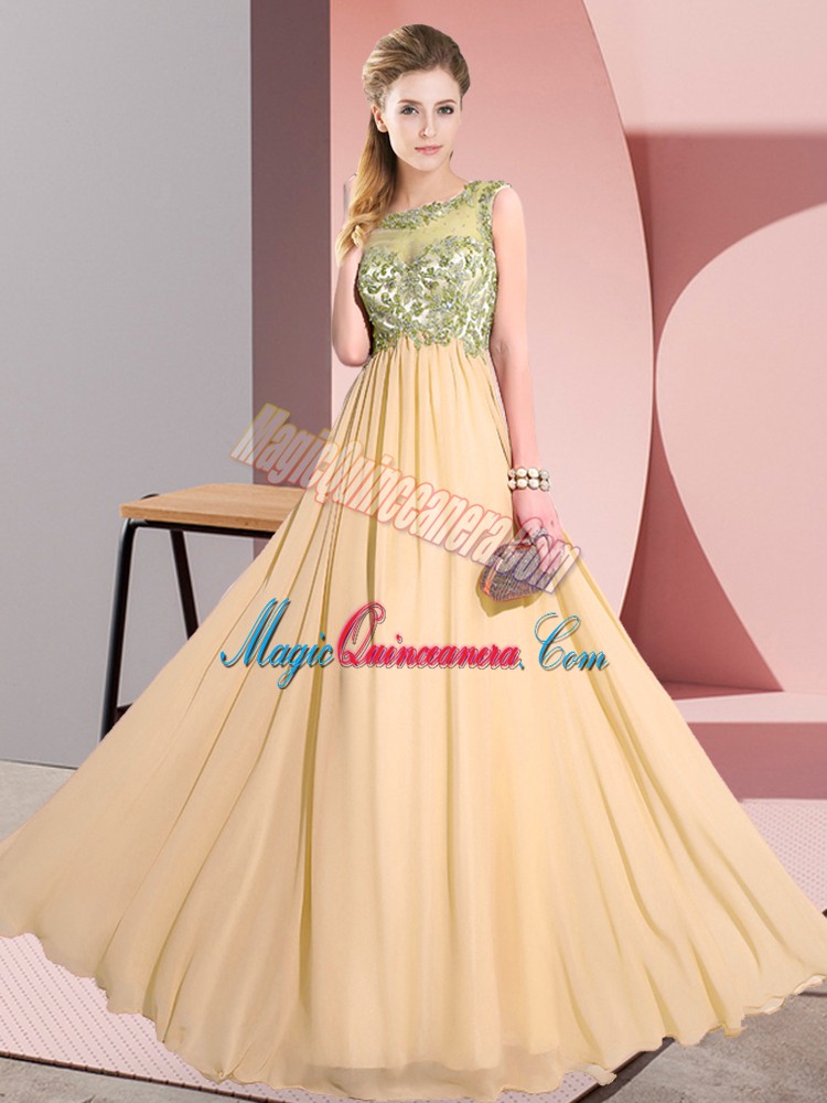 Peach Empire Chiffon Scoop Sleeveless Beading and Appliques Floor Length Backless Damas Dress