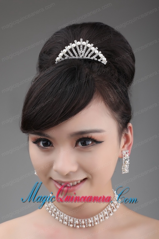 , Pearl Wedding Jewelry Set Including Necklace Earrings And Crown