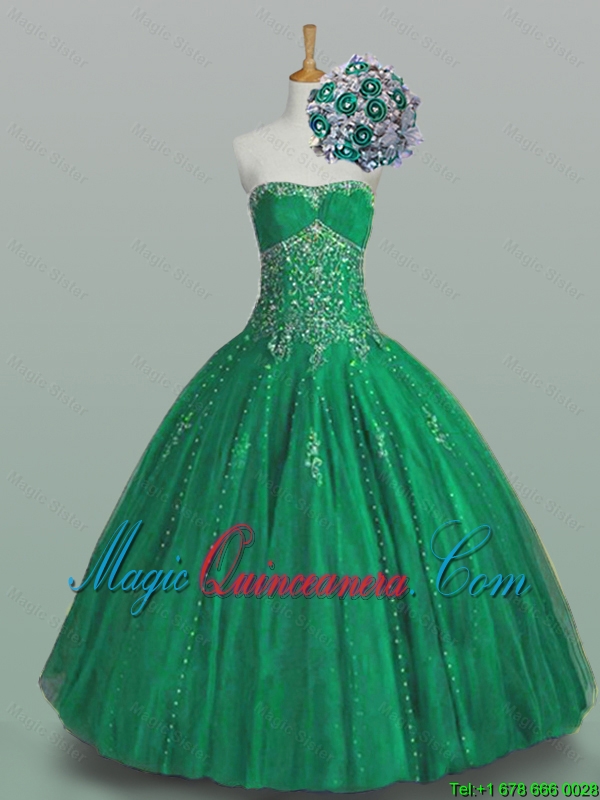 Perfect 2015 Fall Ball Gown Beaded Green Sweet 16 Dresses with Appliques
