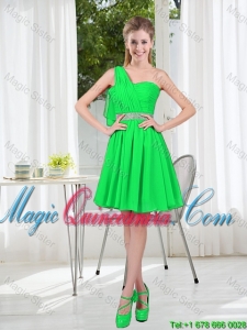 green one shoulder dama gowns with sleeveless,
