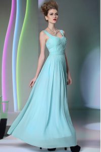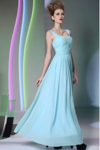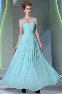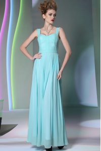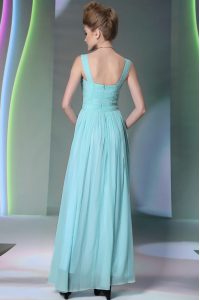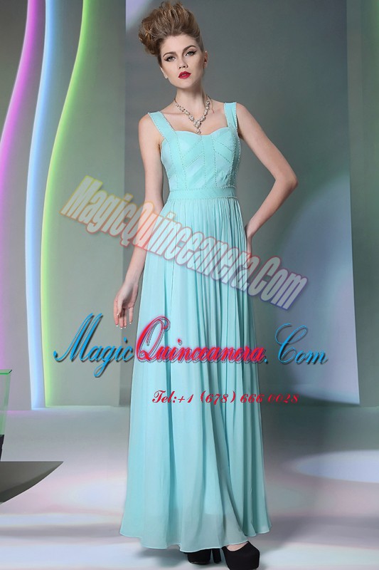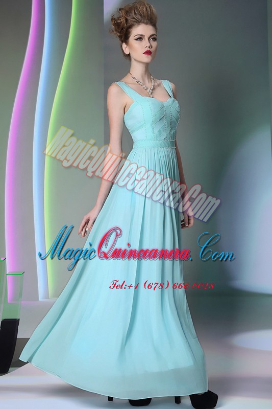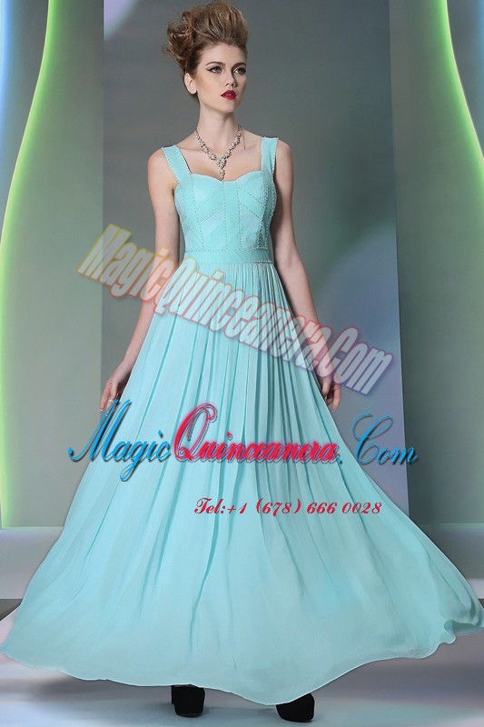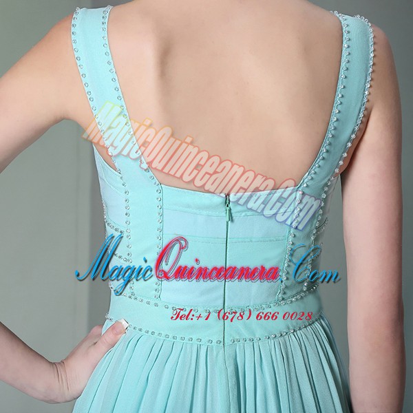 Perfect Aqua Blue Prom Dress Prom and Party and For with Beading Straps Sleeveless Zipper