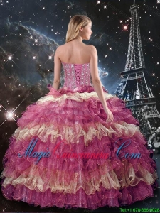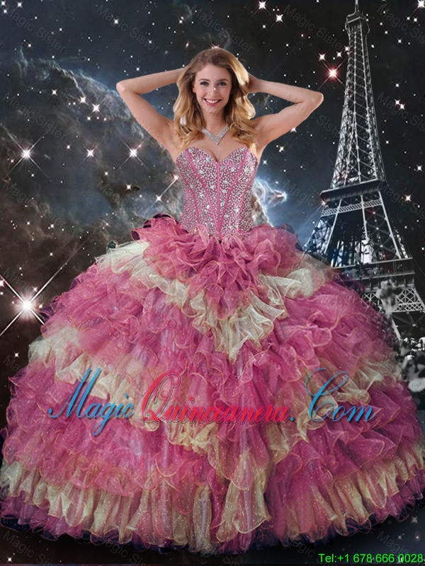 latest sweet 16 gown in spring, Perfect Beaded Multi Color Quinceanera Dresses with Ruffled Layers for 2016