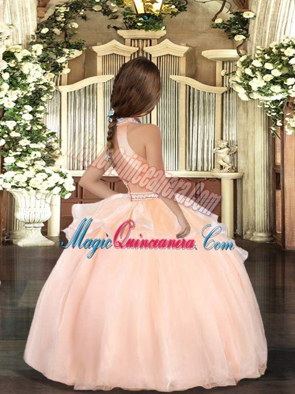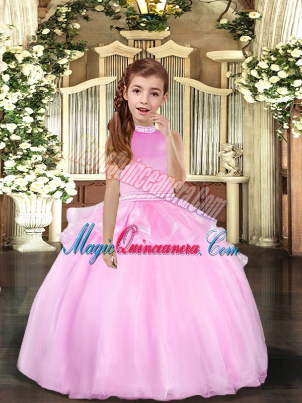 , Perfect Floor Length Lilac Little Girls Pageant Gowns Organza Sleeveless Beading