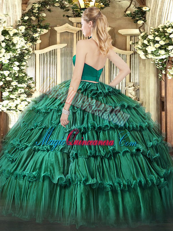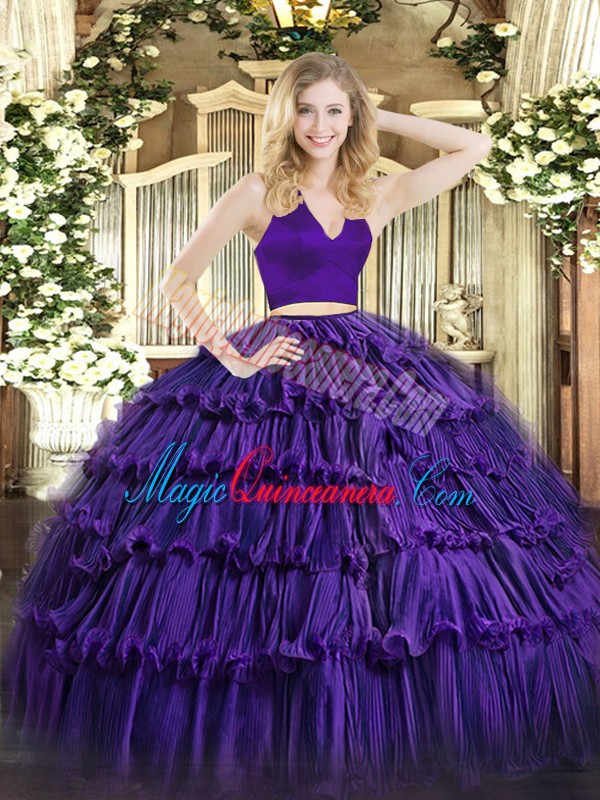 , Perfect Floor Length Purple Quince Ball Gowns Halter Top Sleeveless Zipper