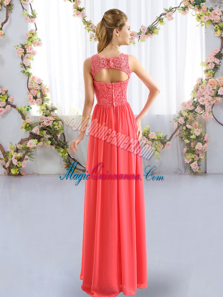 Perfect Gold Chiffon Zipper Scoop Sleeveless Floor Length Damas Dress Lace