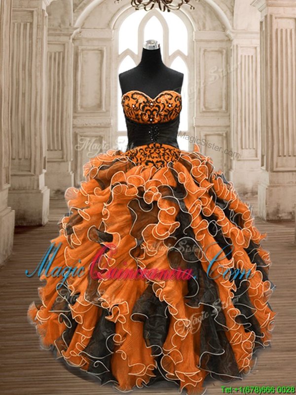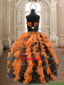 Perfect Orange and Black Sweet 16 Dress with Beading and Ruffles