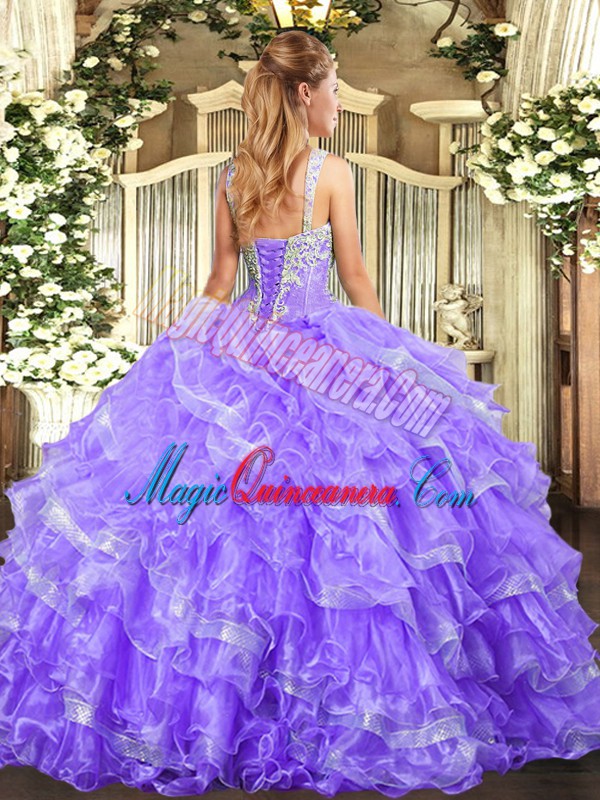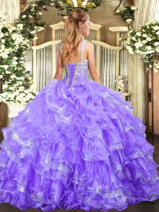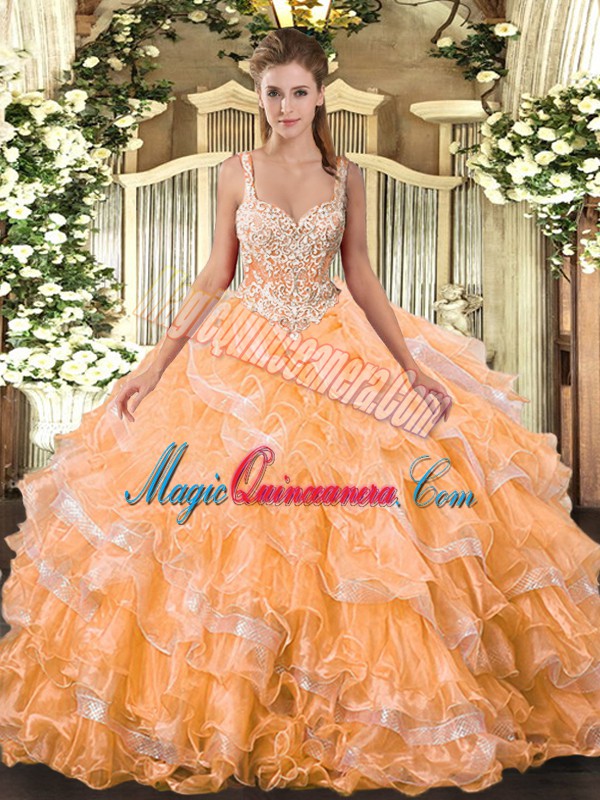 Perfect Orange Ball Gowns Beading and Ruffled Layers Sweet 16 Dresses Lace Up Organza Sleeveless Floor Length