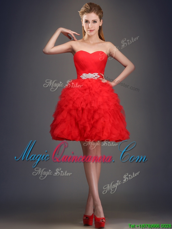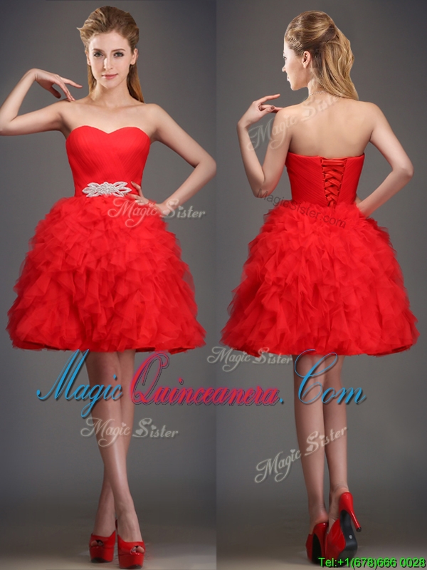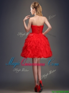 Perfect Really Puffy Red Dama Dress with Beading and Ruffles