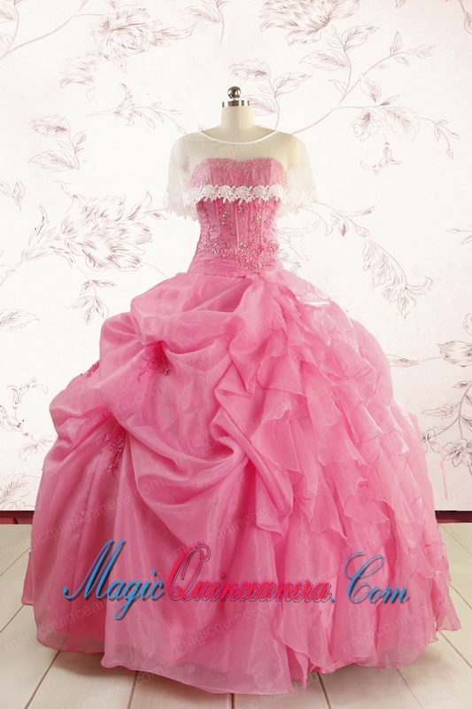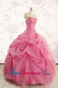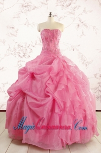 , Perfect Rose Pink Quinceanera Gowns with Pick Ups for 2015