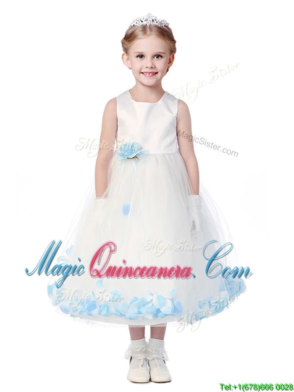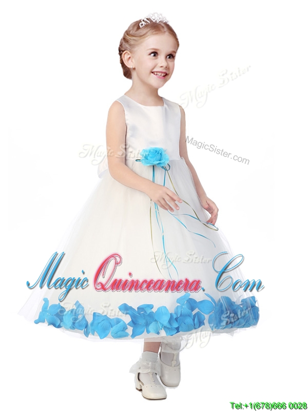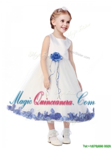 Perfect Scoop Kid Pageant Dress with Aqua Blue Hand Made Flowers