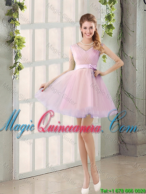 Perfect V Neck Strapless Short Dama Dresses with Bowknot