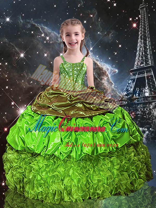 Pick Ups Ball Gowns Winning Pageant Gowns Spaghetti Straps Organza Sleeveless Floor Length Lace Up - Magic Quinceanera