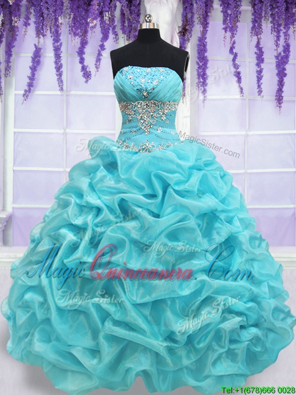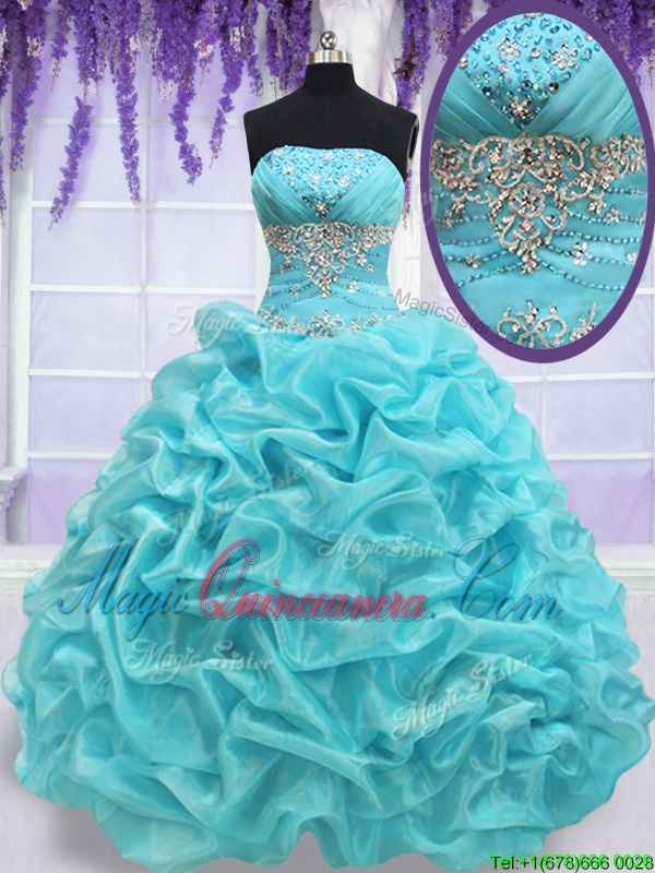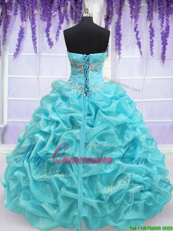 Pick Ups Floor Length Ball Gowns Sleeveless Aqua Blue 15th Birthday Dress Lace Up