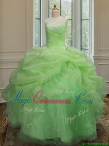 Pick Ups Floor Length Ball Gowns Sleeveless Yellow Green Quince Ball Gowns Lace Up