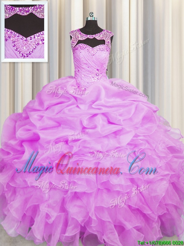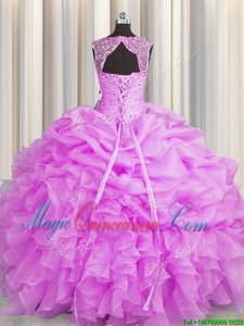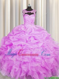 , Pick Ups Floor Length Lilac 15 Quinceanera Dress Scoop Sleeveless Lace Up
