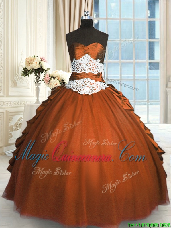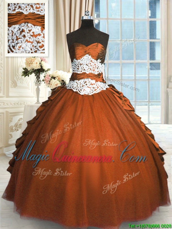 Pick Ups Floor Length Rust Red Ball Gown Prom Dress Sweetheart Sleeveless Lace Up