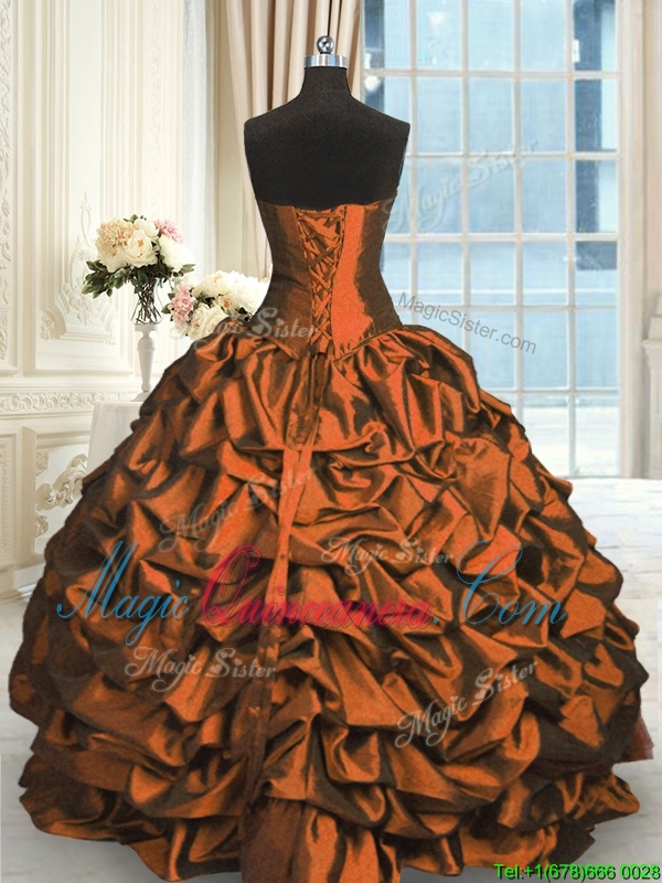 , Pick Ups Floor Length Rust Red Ball Gown Prom Dress Sweetheart Sleeveless Lace Up