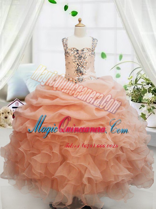 Pick Ups Orange Sleeveless Organza Zipper Pageant Dress Wholesale for Party and Wedding Party
