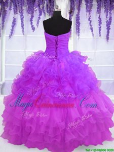 Pick Ups Ruffled Strapless Sleeveless Lace Up Quinceanera Dresses Multi-color Organza