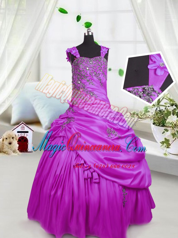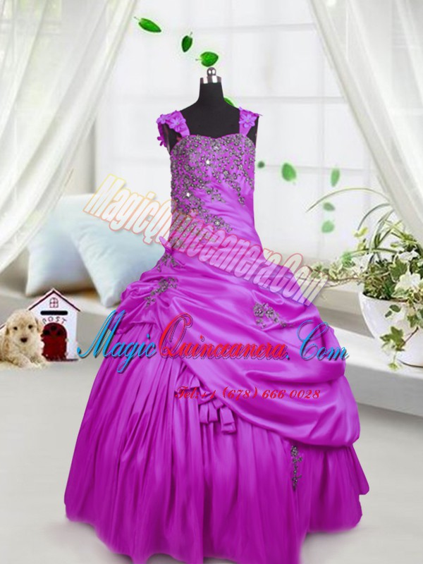 , Pick Ups Straps Sleeveless Lace Up Pageant Dresses Fuchsia Satin
