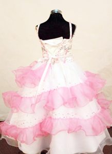 beaded toddler pageant dresses for cheap, Pink and White Beaded and Ruffled Layers Little Girl Pageant Dress