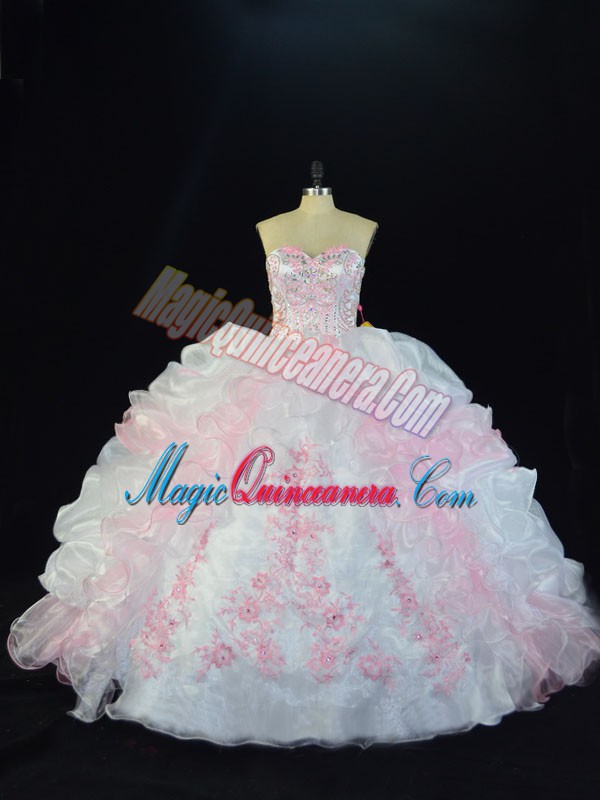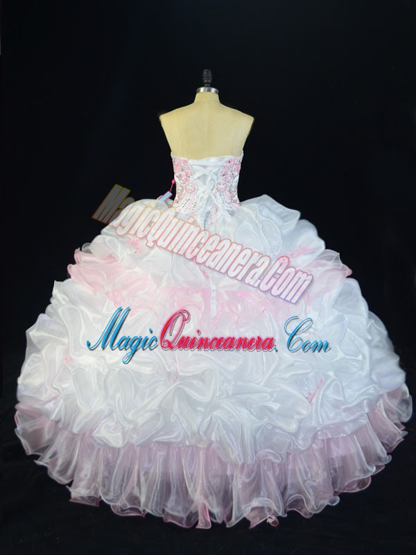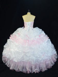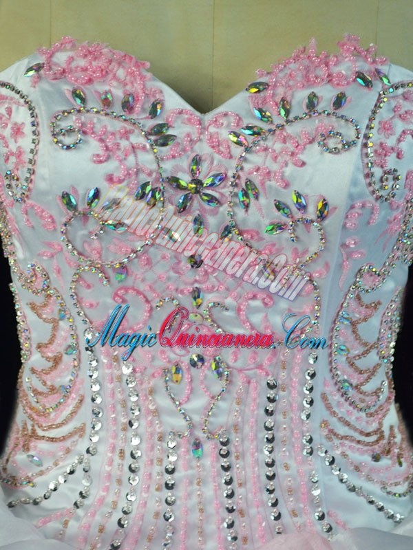 Pink And White Sweetheart Lace Up Beading and Pick Ups 15 Quinceanera Dress Sleeveless