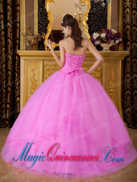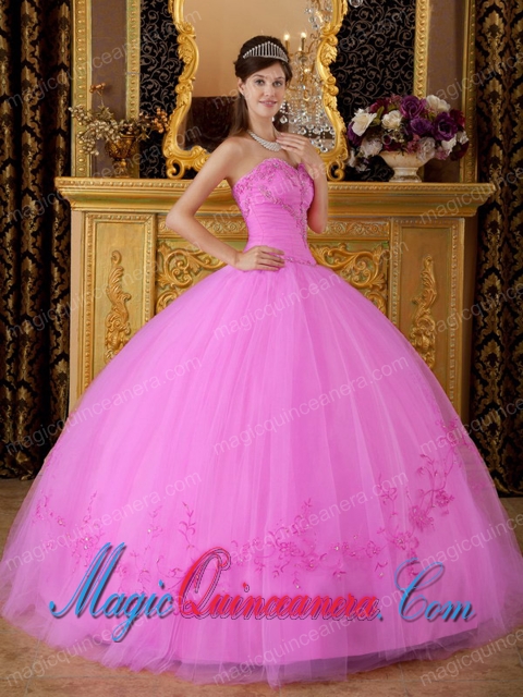 Pink Ball Gown Sweetheart Floor-length Tulle Appliques Spring Quinceanera Dress